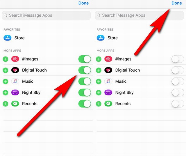 Maintenant, appuyez sur les bascules à côté de chacune de ces applications pour vous assurer qu’elles sont éteintes (gris). Tant qu’ils sont allumés (vert), ils continueront à rester sur le panneau ci-dessous. Une fois que vous avez désactivé les commutateurs de toutes les applications que vous jugez inutiles, appuyez simplement sur Terminé dans le coin supérieur droit.