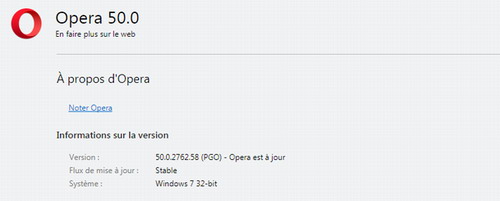 Là, vous pouvez voir toutes les informations sur votre version actuelle d’Opera, et d’autres informations moins importantes.