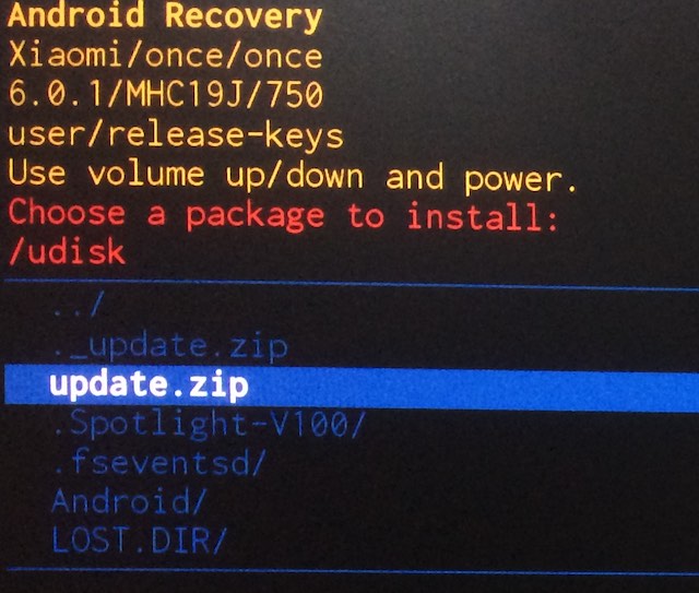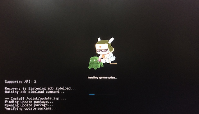 • La Mi Box démarrer en mode de récupération. Dans le menu, utilisez la télécommande pour sélectionner l’option qui dit Appliquer mise à jour de EXT.