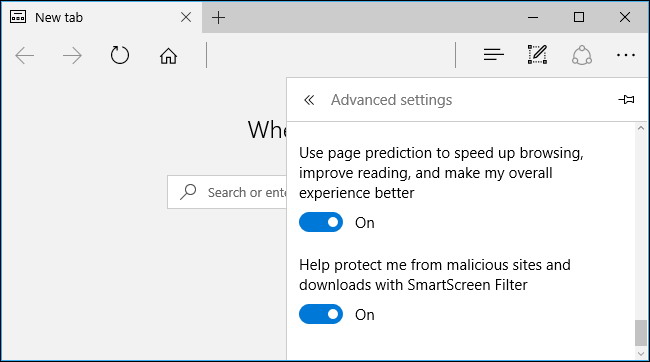 - Aidez – moi à protéger des sites malveillants et des téléchargements avec filtre SmartScreen : Lorsque vous visitez une page web, chèques Edge contre une liste de sites connus dangereux. Bord télécharge une liste de pages Web sûres pour accélérer les choses. Lorsque vous visitez un site Web, il vérifie bord contre la liste sur votre PC pour voir s’il est sûr. Si elle ne figure pas sur la liste, Edge envoie l’adresse de la page aux serveurs de Microsoft pour voir si elle est dangereuse. Edge utilise ce même processus pour vous protéger des téléchargements de fichiers dangereux, aussi. Nous ne vous recommandons pas de désactiver cette fonction, car il aide à vous protéger contre le phishing et les sites malveillants. Cependant, vous pouvez le désactiver pour éviter les arêtes de vérifier les pages Web que vous visitez avec Microsoft.