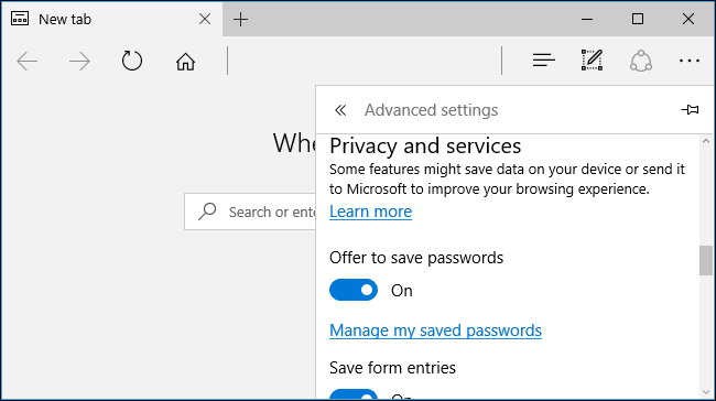 Si vous choisissez d’enregistrer les mots de passe dans Edge, Edge les stocker dans le Credential Manager de Windows. Windows 10 synchronisera vos mots de passe enregistrés entre vos périphériques par défaut, aussi.