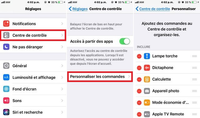 - Appuyez et maintenez sur les trois lignes vers la droite, puis faites glisser vers le haut ou vers le bas pour modifier l’ordre des contrôles que vous avez ajoutés au Centre de contrôle iOS 11.