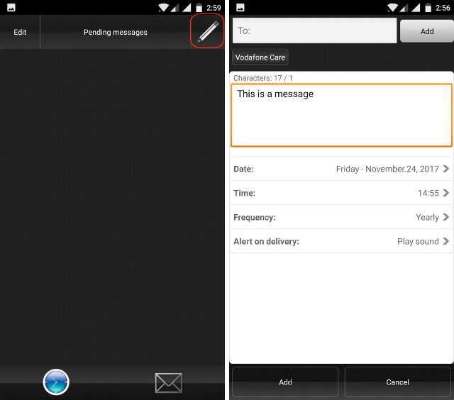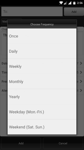 L’application vous permet de programmer des messages texte récurrents. Ce que cela signifie, c’est que non seulement vous pouvez programmer un message normalement comme sur d’autres applications, mais vous pouvez également assigner une fréquence d’envoi (quotidien, hebdomadaire, mensuel, annuel, week-end et week-end) à vos messages programmés. Selon la fréquence que vous avez définie, l’application renverra le message à ces heures spécifiées. C’est le meilleur si vous souhaitez organiser des messages pour des événements récurrents tels que des anniversaires ou des anniversaires. Cette application m’a aidé à entrer dans les bons livres de tous mes amis et membres de la famille.