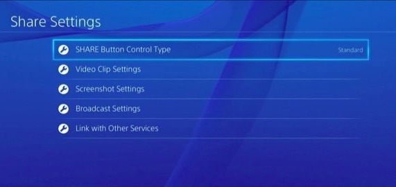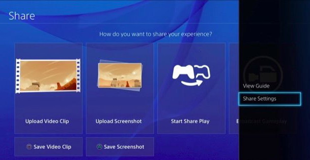 Vous pouvez personnaliser le bouton Partager, la vidéo et les paramètres de capture d’écran. Pour ce faire, appuyez d’abord sur le bouton « Partager » dans un jeu pour accéder au menu Partager. Appuyez sur le bouton « Options » de votre contrôleur et sélectionnez « Paramètres de partage ».