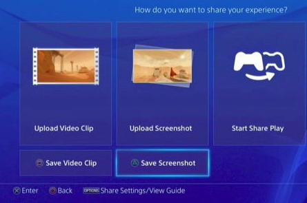 Lorsque le menu de partage s’affiche, vous pouvez sélectionner « Enregistrer la capture d’écran » en appuyant sur le bouton Triangle ou sur « Enregistrer le clip vidéo » en appuyant sur le bouton carré. Cela permettra d’enregistrer une capture d’écran ou un clip vidéo sur votre PlayStation.