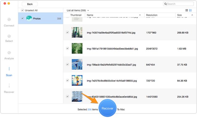 Étape 2 : Si votre téléphone a été enraciné, l’analyse commencera et le résultat de l’analyse sera affiché. Sélectionnez vos fichiers à récupérer.