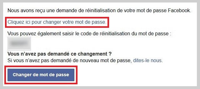 Après avoir reçu le code dans l’e-mail que vous avez utilisé pour configurer votre compte, vous pouvez cliquer sur le lien « Cliquez ici pour changer votre mot de passe » , puis copier le code de réinitialisation et le coller sur le site Facebook. Mais, il est plus facile de cliquer sur le bouton « Changer le mot de passe » dans l’e-mail et de contourner le processus de saisie du code.