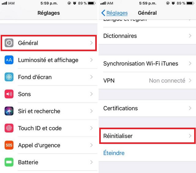 Pour réinitialiser les paramètres de votre appareil (qu’il s’agisse d’une réinitialisation partielle ou d’une réinitialisation complète aux paramètres d’usine par défaut), vous devez vous rendre aux paramètres généraux.