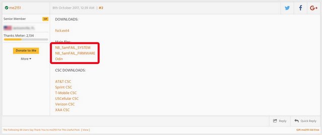 2. Ensuite, nous devrons télécharger les fichiers suivants de XDA dans cet article : SAMFAIL System, SAMFAIL Firmware et Odin. Enregistrez-les sur votre bureau et extrayez-les tous.