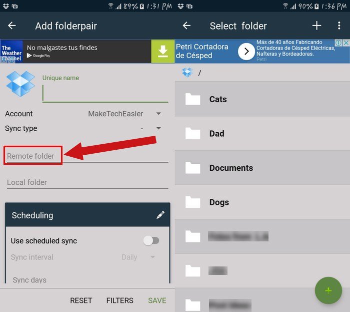 Une fois que vous avez mis en place la section locale et à distance dossier, vous pouvez donner le processus de synchronisation de votre propre touche personnelle. Faites défiler jusqu’à planification afin que vous puissiez décider quand vous voulez que les intervalles de synchronisation aient lieu. Vous pouvez également choisir si vous voulez que le processus de synchronisation à faire sur WiFi, utiliser 4G / 3G / 2G, les notifications montrent le succès et l’échec de synchronisation, et plus encore.