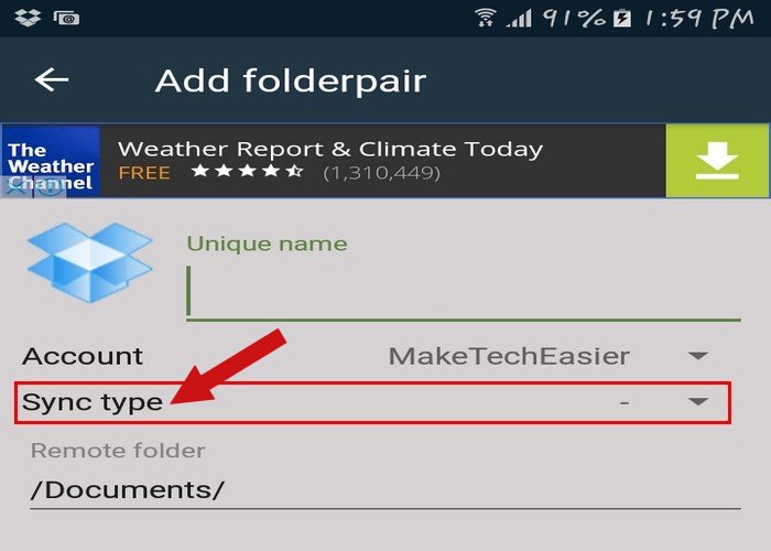 Une chose très importante à garder à l’esprit est de vous assurer que le type de synchronisation est réglé sur distance des dossiers. De cette façon, les fichiers sont envoyés à votre compte Dropbox. Si vous ne définissez pas, les fichiers ne seront pas transférés.