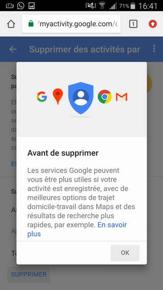 À ce moment-là, un avertissement s’affichera pour vous faire savoir que votre historique de recherche peut être important. Si vous n’êtes toujours pas convaincu, appuyez sur le bouton « OK ». Vous ne pouvez pas défaire ce que vous allez faire!