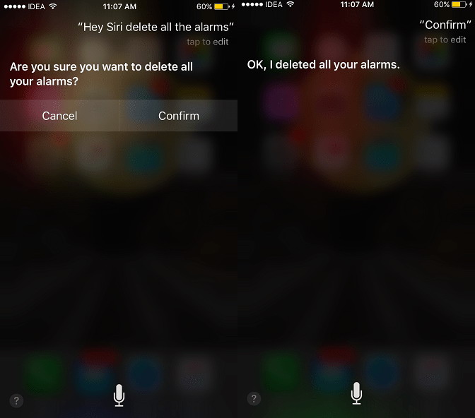 2. Dites à Siri de Supprimer toutes les alarmes.
