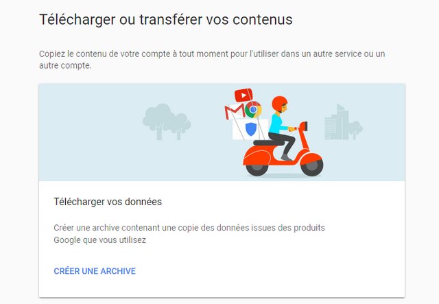 • Une fois ouvert, cliquez sur « Créer une archive ». Vous pouvez sélectionner les produits Google dont vous souhaitez sauvegarder les informations.
