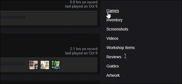 Cliquez sur « Jeux » sur le côté droit de votre page de profil de compte.