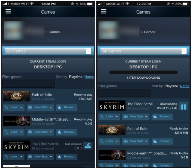 Steam vous permet d’installer à distance des jeux depuis votre smartphone, comme vous le faites avec une PlayStation 4 ou une Xbox One. Vous pouvez télécharger des jeux sur votre ordinateur de jeu depuis n’importe où, en vous assurant que les gros téléchargements sont terminés et que le jeu est prêt à jouer lorsque vous arrivez à la maison. Vous pouvez également le faire à partir de n’importe quel navigateur Web.
