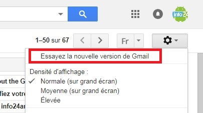 - Dans la fenêtre contextuelle Paramètres, cliquez sur Essayer le nouveau Gmail