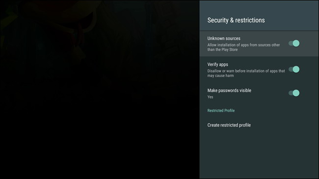 En bref, vous devrez vous diriger vers Paramètres> Sécurité et restrictions pour activer « Sources inconnues », puis installer ES File Explorer à partir de Play Store. De là, vous pouvez prendre des fichiers APK dans votre dossier Dropbox ou Google Drive et les installer directement sur votre téléviseur.