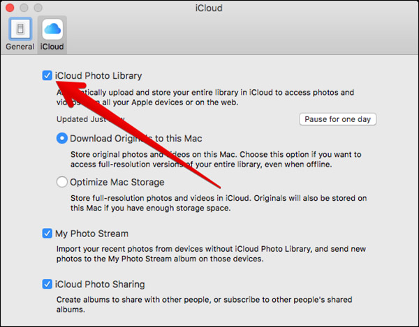 Étape 4. Sélectionnez iCloud puis cochez la case à côté de iCloud Photo Library.