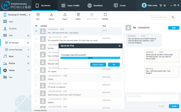 Avec Android Transfer, vous pouvez afficher et exporter vos messages texte sur votre PC. Vos informations seront entièrement copiées sur votre bureau, y compris l’heure d’envoi / réception, les noms et les numéros. S’ennuyer de l’enregistrement sur l’écran du téléphone minuscule? Android Transfer peut même vous permettre d’envoyer des SMS sur un ordinateur.
