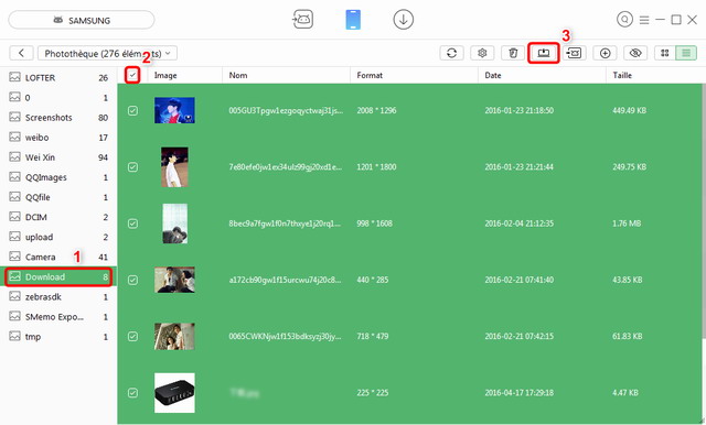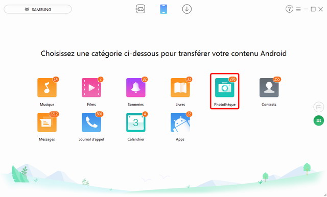 Dans ce guide, nous allons vous expliquer comment transférer les photos depuis le téléphone Samsung Galaxy vers PC. Avec le développement des smartphones, le téléphone portable devient l’appareil photo du quotidien. Les gens utilisent leurs l’appareil Samsung pour enregistrer les bons souvenirs de la vie n’importe quand et n’importe où. Mais une quantité de photos sont stockées dans l’appareil, l’insuffisance du mémoire rend le téléphone plus lent et bloqué. Pour résoudre ce problème, nous vous conseillons de transférer les photos Samsung vers PC pour les sauvegarder. Puis vous pouvez les supprimer sur l’appareil afin de libérer plus d’espace. Dans cet article, on vous dira une façon simple, juste trois étapes.