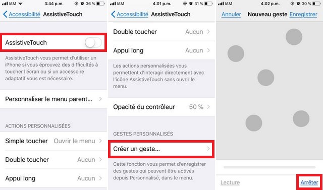 Comment ajouter des gestes personnalisés à AssistiveTouch