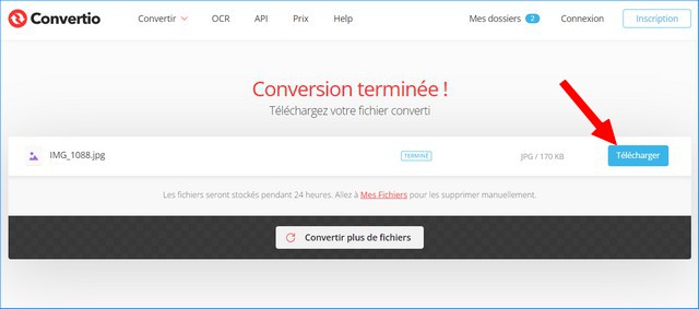 • 5. Une fois la conversion terminée, téléchargez le fichier JPG converti en cliquant sur le bouton Télécharger.