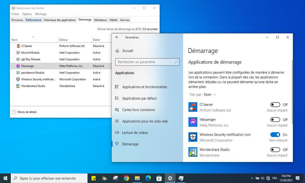 Sous Windows 10, les applications peuvent être configurées pour être lancées au démarrage à partir de l’application Paramètres, du Gestionnaire des tâches ou via le dossier Démarrage.
