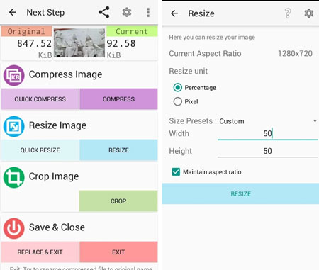 Cette application vous aide à réduire la taille de l’image. Vous pouvez redimensionner, recadrer, faire pivoter des photos aussi. Il n’y a aucune influence sur la photo originale que vous souhaitez modifier, même si l’image est réduite. Vous pouvez l’utiliser soit prendre une photo, soit extraire une image de la galerie pour la modifier. Il est entièrement gratuit et disponible sur Internet, mais il contient de l’annonce. Télécharger.