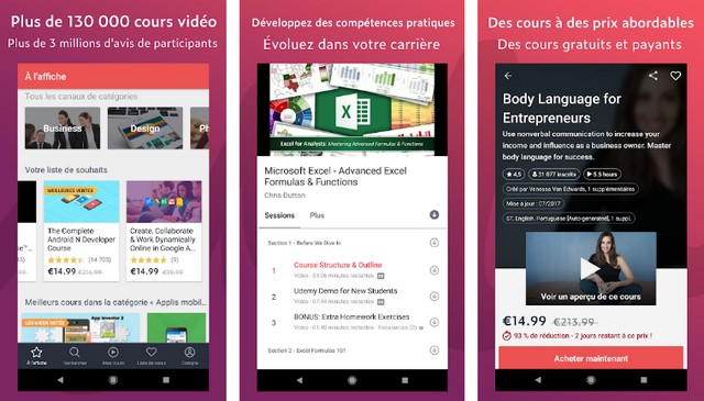 Udemy est sans doute l’une des meilleures applications éducatives sur Android. Ce n’est pas une application pour l’éducation formelle, mais si vous voulez apprendre une compétence, Udemy est la meilleure option pour vous.