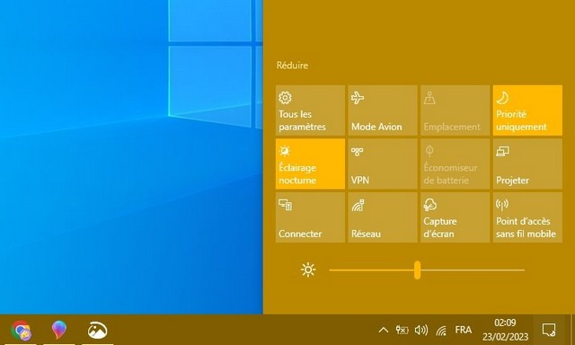 Pour modifier la luminosité via le Centre d’action, procédez comme suit :