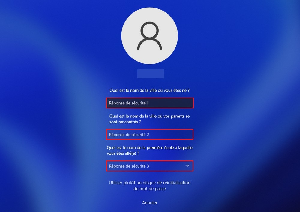 Sur l’écran de verrouillage, cliquez sur le lien « J’ai oublié mon mot de passe » situé en dessous de la zone de saisie du mot de passe.