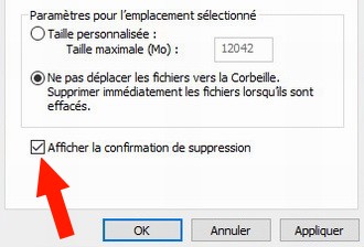 Lorsque cette option est activée, il peut être judicieux d’activer également la case de confirmation en cochant la case « Afficher la confirmation de suppression » . Cette option oblige Windows à vous demander à tout moment de supprimer un élément pour que vous souhaitiez réellement le supprimer.