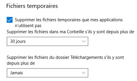 Sur la page suivante, accédez à la section « Fichiers temporaires » , puis activez l’option « Supprimer les fichiers temporaires que mes applications n’utilisent pas » . Utilisez le premier menu déroulant de cette section pour définir le nombre de jours souhaité.